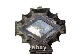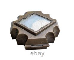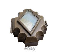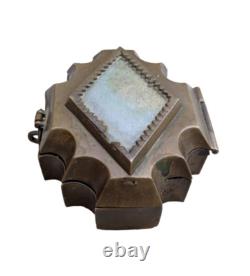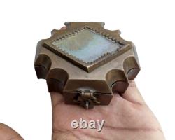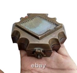 Rare 1920's Old Vintage Antique Brass Fine Glass Fitted Engraved Unique Shape Beautiful Jewelry Box. 80-90 Years Old Antique Box. Original Antique Brass Handcrafted Rare Unique Shape Jewelry Box. Original Antique Painted Glass Fitted Very.