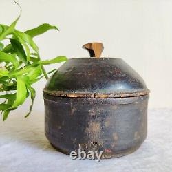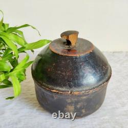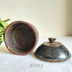 19c Vintage Handmade Lacquered Rare Wooden Box Decorative Collectibles W646. Size- 5.25 Inches (Tall) x 5.2 Inches (Diameter). You will definitely love it.