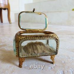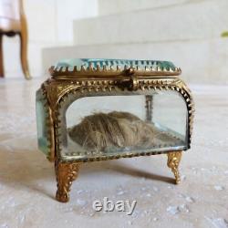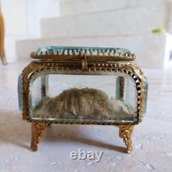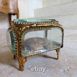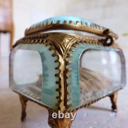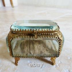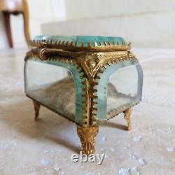 ANTIQUE FRENCH JEWELRY BOX with BELLEVED FACETED GLASS PANELS. 3 1/3 " x 2 2/5 " (8,5 cm x 6,1 cm). H = 2 1/2 (6,3 cm).