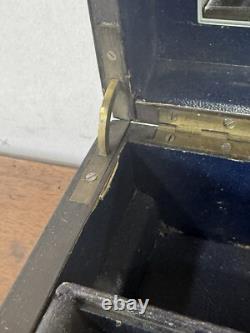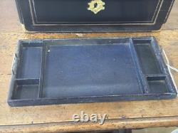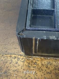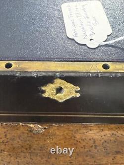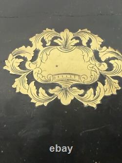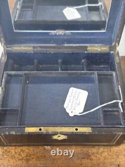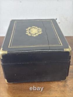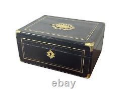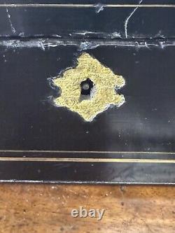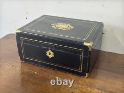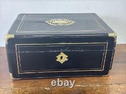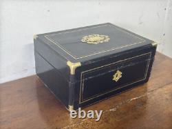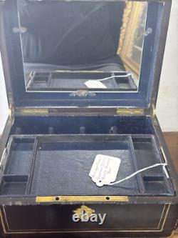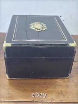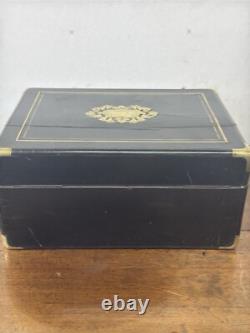 Antique French Jewelry box sewing compartments inlaid ebonized boulle 1800s