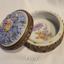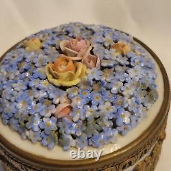 Antique German Elfinware Powder /trinket box forget me not metal ormolu