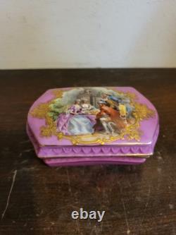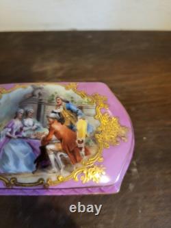 Antique Sevres France Porcelain Trinket Box Pink Courting Couple Scene