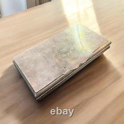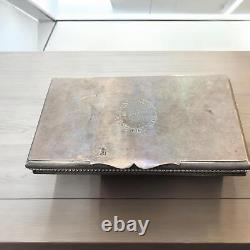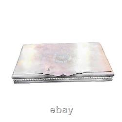 This elegant box features a refined rectangular design in polished silver. The surface is adorned with a subtle embossed circular motif, adding a touch of sophistication.