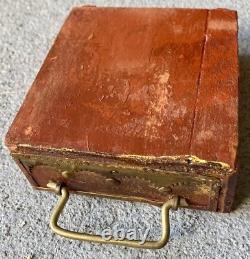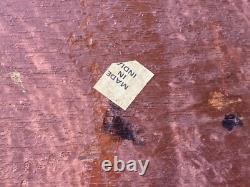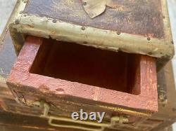A very sturdy piece, the weight is 13 pounds, 11 ounces. The metal edge on the top front is a little pulled from the use of the top drawer. The only main issue I found was the back corner of the largest drawer has wood damage (see last photo).Anything else, the photos are the best representation of the item. The label on the bottom says "Made in India". This piece displays beautifully and is functional storage.