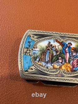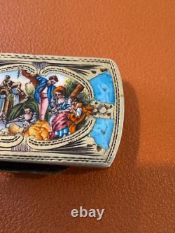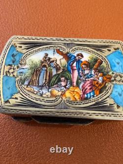 Vintage Antique Italian 800 Silver Enamel Trinket Snuff Box with Various Figures