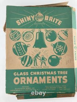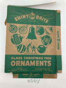 Box of vintage SHINY BRITE, Made in USA ornaments. There is a little of everything in this box.