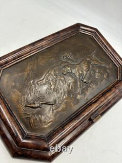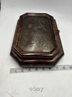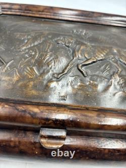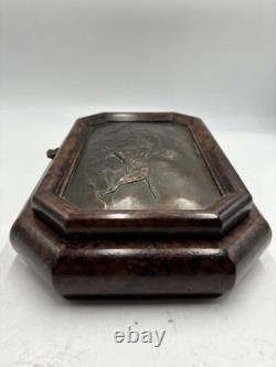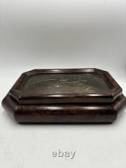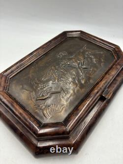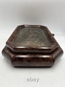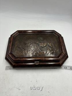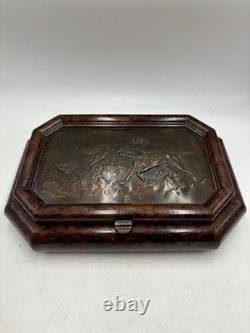 It has no chips cracks or scratches. I believe the top of the box is casted bronze. There is a mark that says "Stain 95%". This box is fairly heavy weighing in at just under 7lbs. Please see pictures and feel free to ask any questions.