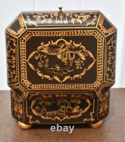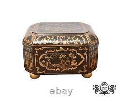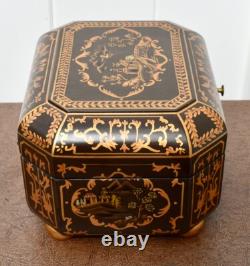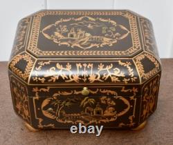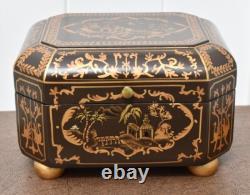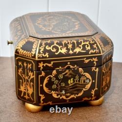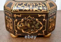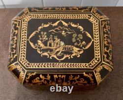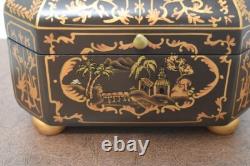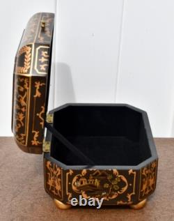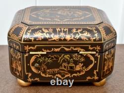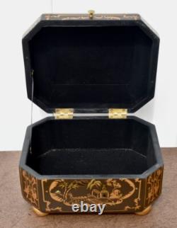 Vintage Chinoiserie Painted Box with Flip Top & Felt Lined