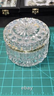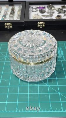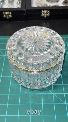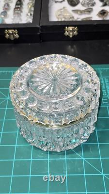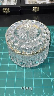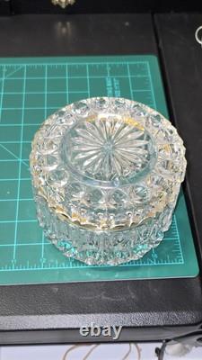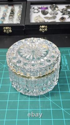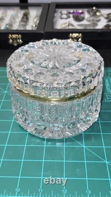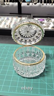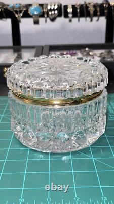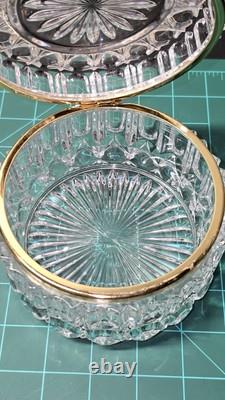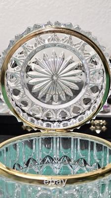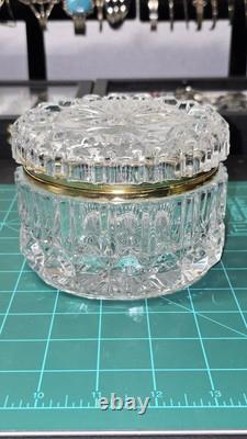 Absolutely amazing quality beautiful glass pattern great condition no issues at all gold brass trim hinged opening amazing very high quality crystal.
