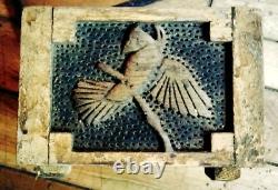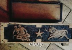 This Vintage Hand Carved Folk Art Footed Box is a unique and handmade decorative collectible piece. The box features intricate wood carvings in an Art Deco style, with a wood-finished finish.