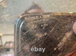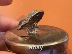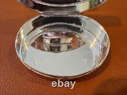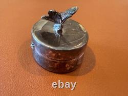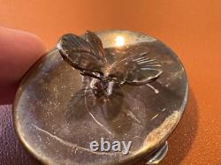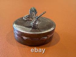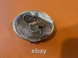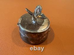 This Vintage Italian Thistle & Bee Sterling Silver Trinket / Pill Box features a unique design with a delicate butterfly detail. Made in Italy, this small trinket box exudes elegance and charm. Crafted from high-quality sterling silver, it serves as a beautiful and functional decorative piece for any collector or individual in need of a stylish storage solution for small treasures. In pretty good condition as the pics show with it needing a good polish and it comes exactly as shown.