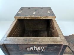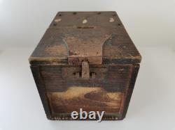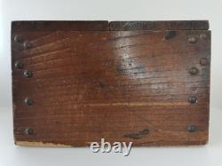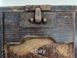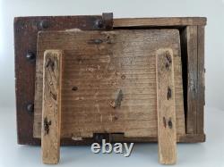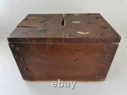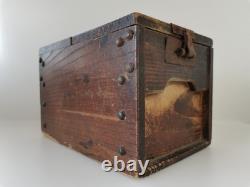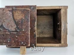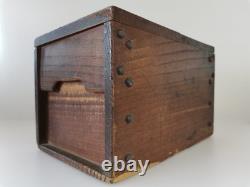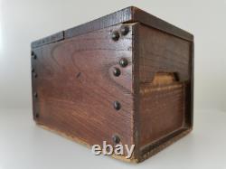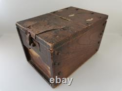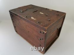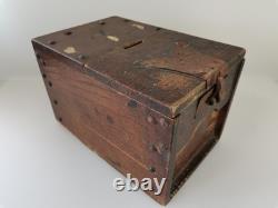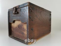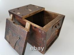 This charming wooden box,, is a beautiful example of vintage Japanese craftsmanship. Believed to date from the late Edo period to the Meiji period, it likely served as a cash box, showcasing traditional joinery techniques with its sturdy wooden construction, metal nails, and simple sliding panel design. Perfect for adding a touch of rustic, authentic vintage charm to your home or collection. Size: approximately 17 cm (6.7 inches) in height, 26 cm (10.2 inches) in depth, and 17 cm (6.7 inches) in width, and weighing 1196 g.