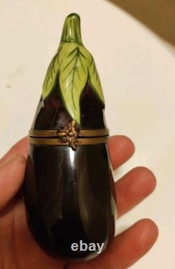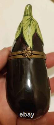 Vintage Limoges Bone Trinket Box- Eggplant.