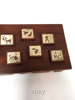 Charm with this beautiful vintage mid-century handcrafted box. The rectangular shape of the box is adorned with metal silhouettes, perfect for adding a cowboy and western touch to your collection. The rosewood and cutout metal material used to make this box is of high quality.