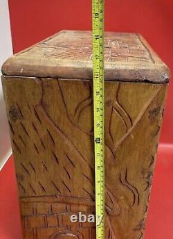 This vintage wooden storage chest from Pier 1 is a one-of-a-kind piece that will add character to any room. Hand-crafted with care, this medium-sized box features a rustic square shape and a beautiful antique finish. Perfect for storing keepsakes or adding to a decorative collection, this wooden box showcases a unique 1970s style and features artful boxing-themed accents. Whether you're a teen, adult, or a kid at heart, this storage box will make a stylish addition to your home décor. Don't miss out on the chance to own an original piece with history and charm.