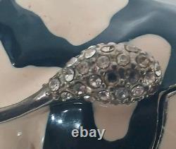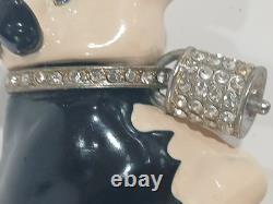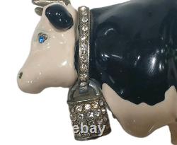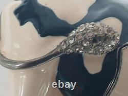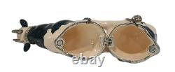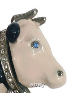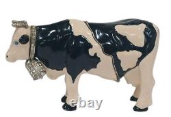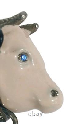 This vintage cow figurine is a must-have for collectors of unique and rare items. The metal box features a glossy paint finish with jewel accents, making it a beautiful addition to any collection. Measuring at a small size, this cow figurine is perfect for display on a shelf or desk.