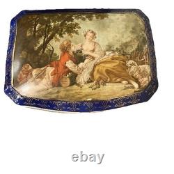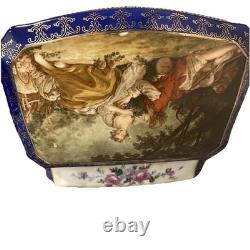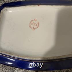 This Vintage RS Prussia Porcelain Jewelry Trinket Box is a stunning piece from the Victorian era, manufactured in France in 1870. The cobalt blue casket box features hand-painted designs, making it a romantic and unique addition to any collection. Measuring 9 inches in length and 6 inches in width, this antique piece exudes elegance and charm, perfect for storing precious jewelry or trinkets in a stylish manner.