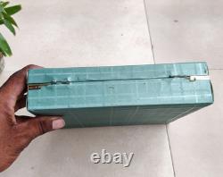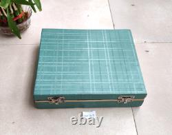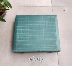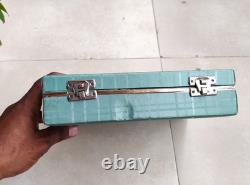 Vintage Teal Jewelry Box with Blue Velvet Interior Necklace Box Retro Decor Box WN469. This charming vintage teal jewelry box features a unique plaid-patterned exterior with metal clasps and a luxurious blue velvet interior, complemented by a soft satin lining. Perfect for storing jewelry, keepsakes, or small treasures, this retro storage case showcases a classic design with minor wear that adds to its antique appeal. Ideal for collectors or as a decorative accent.