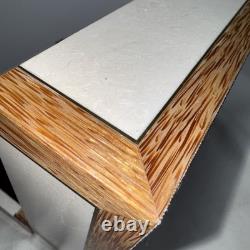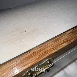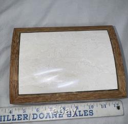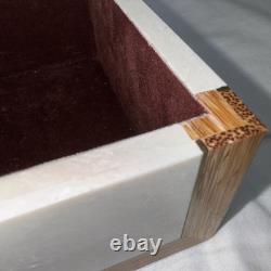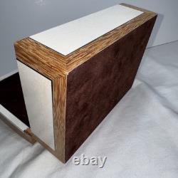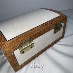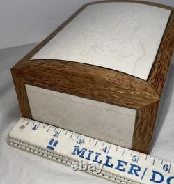 Vintage Tessellated Stone Box Brass Inlaid Textured Burl Wood Hinged Maitland