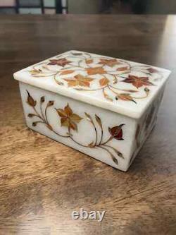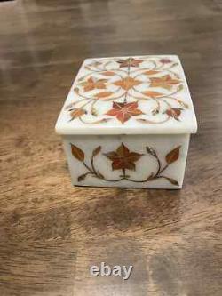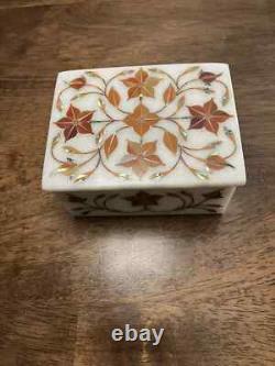 Very unique Art by Indian Artist, Marble Jewelry box. Used Material: White Marble & Other Semi Precious Stone. Size: 4"x3"x2 Inch. Room: Bedroom, Dining Room, Hallway, Home Office/Study, Kid's Bedroom, Kitchen, Laundry/Utility Room, Living Room, Patio, Playroom. Packaging: Wood & Foam Export Packing. Can Be customize, Please Message us your desired Size. It can be used as a box as a gift. The box is made in Agra India & fully handmade. The parcel is dispatch with proper packing & fully insured covering all kind of risk.