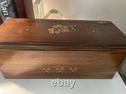 VINTAGE WOODEN BOX - SOLID WOOD - hand painted design EXCELLENT CONDITION 70s- MULTIPURPOSE.
