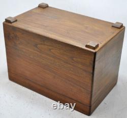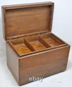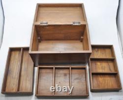 A nice looking old wooden large size storage box originally used for keeping jewellery. Hand crafted with 3 trays inside, each has different compartments. Good condition and a rich patina. 28.5 x 18 x 20 cms / 11.4 x 7.2 x 8 inches.