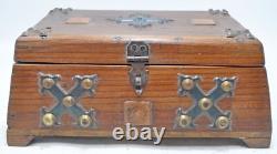 A nice looking old wooden storage chest box. Hand crafted in a nice shape and metal fitted on wood. Good condition and a rich patina. 28 x 18 x 12 cms / 11.2 x 7.2 x 4.8 inches.