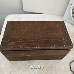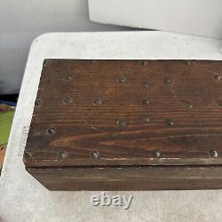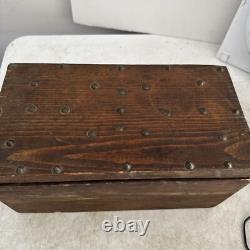 This vintage wooden chest box is a perfect addition to your collection. With its early 1900s design and boxed features, it is a great way to store your items and add a touch of history to your decor. The box is in good shape and has a sturdy build, making it perfect for heavy use.